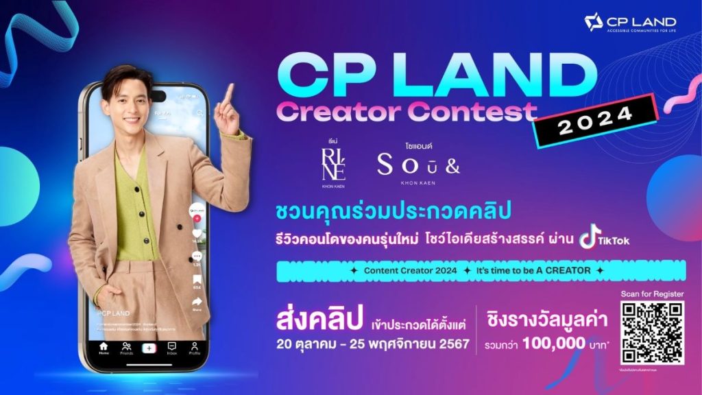 CP LAND ชวนคุณมาเป็นคอนเทนต์ครีเอเตอร์ ส่งคลิปรีวิว ชิงรางวัลกว่า 100,000 บาท กับแคมเปญ #CPLANDCREATORCONTEST2024