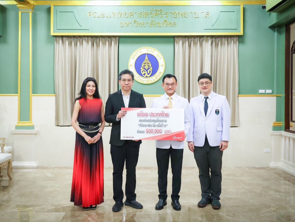 เอไอเอ ประเทศไทย มอบเงินจำนวน 500,000 บาท สนับสนุนโครงการ “ศิริราช เดิน-วิ่ง ครั้งที่ 17”