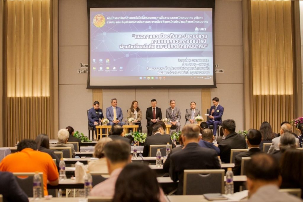 กรุงเทพฯ 1 พฤษภาคม 2568 – ศาสตราจารย์พิเศษวิศิษฏ์ วิศิษฏ์สรอรรถ ปลัดกระทรวงดิจิทัลเพื่อเศรษฐกิจและสังคม ร่วมกับ พลตำรวจเอก ณัฐธร เพราะสุนทร กรรมการ กสทช. (ด้านกฏหมาย) และภาคีเครือข่ายภาครัฐ เอกชน พร้อมด้วย ทรู คอร์ปอเรชั่น โดย นายจักรกฤษณ์ อุไรรัตน์ หัวหน้าคณะผู้บริหารด้านกิจการองค์กร ร่วมแบ่งปันมุมมองเกี่ยวกับ แนวทางการป้องกันและปราบปรามการหลอกลวง ทางออนไลน์ผ่านโซเชียลมีเดีย และบริการโทรคมนาคม และการบังคับใช้พระราชกำหนดมาตรการป้องกัน และปราบปรามอาชญากรรมทางเทคโนโลยี พ.ศ. 2566 และที่แก้ไขเพิ่มเติม (ฉบับที่ 2) พ.ศ.2568  ในเวทีเสวนาแนวทางการป้องกันและปราบปรามการหลอกลวง ทางออนไลน์ฯ จัดโดยคณะกรรมาธิการการเทคโนโลยีสารสนเทศ การสื่อสาร และการโทรคมนาคม วุฒิสภา ร่วมกับ คณะอนุกรรมาธิการกิจการกระจายเสียง กิจการโทรทัศน์ และกิจการโทรคมนาคม