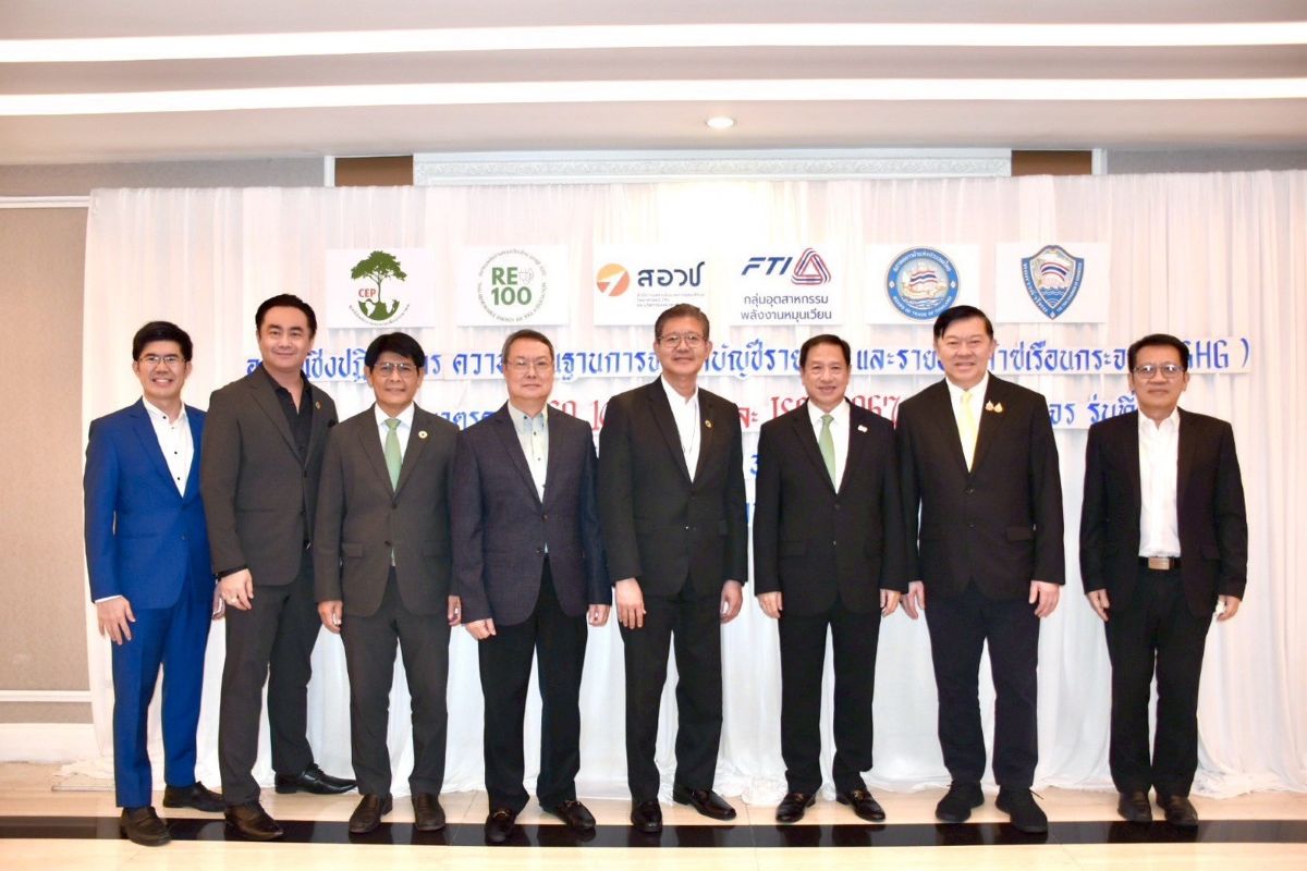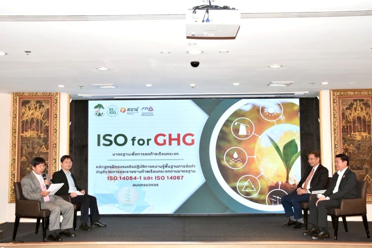 เมื่อวันอังคารที่ 30 กันยายน 2568 ณ โรงแรมแมนดาริน ถ.พระราม 4 เขตบางรัก กรุงเทพฯ ดร.สุวิทย์ ธรณินทร์พานิช ประธานกรรมการมูลนิธิพลังงานสะอาดเพื่อประชาชน, คุณนที สิทธิประศาสน์ ประธานกลุ่มอุตสาหกรรมพลังงานหมุนเวียน สภาอุตสาหกรรมแห่งประเทศไทย และ คุณอาทิตย์ เวชกิจ นายกสมาคมพลังงานหมุนเวียนไทย (อาร์อี 100) พร้อมทั้ง คณะผู้บริหาร ร่วมให้การต้อนรับ คุณพิชัย จิราธิวัฒน์ รองประธานกรรมการหอการค้าไทย และ ประธานคณะกรรมการพลังงานหอการค้าไทย ซึ่งให้เกียรติมาเป็นผู้มอบประกาศนียบัตร แก่ผู้เข้าอบรม จำนวน 33 ท่าน ในหลักสูตร ความรู้พื้นฐานในการจัดทำบัญชีรายการปริมาณ GHG และการรายงานก๊าซเรือนกระจกตามแนวทางมาตรฐาน ISO 14064-1 และ ISO14067 แบบครบวงจร หรือที่เรียกกันว่า หลักสูตร ISO for GHG รุ่นที่ 1 ซึ่งจัดขึ้นเพื่อเสริมสร้างความรู้ความเข้าใจด้านการจัดทำบัญชีปริมาณก๊าซเรือนกระจกและการรายงานตามมาตรฐาน ISO 14064-1 และ ISO 14067 อย่างครบวงจร (อบรมในชั้นเรียน 4 วัน และศึกษาดูงานอีก 1วัน)