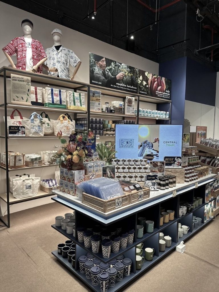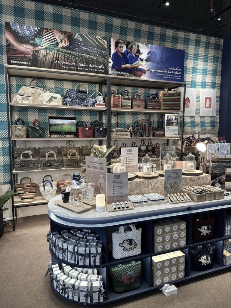 ภายในร้าน “กุ๊ด กุ๊ดส์” สาขา เซ็นทรัล กระบี่ ลูกค้าจะได้สัมผัสกับงานดีไซน์ที่ผสมผสานความร่วมสมัยเข้ากับเสน่ห์ของภูมิปัญญาดั้งเดิมอย่างลงตัว ไม่ว่าจะเป็นผลิตภัณฑ์งานหัตถกรรมจากฝีมือชาวบ้านภายในพื้นที่ภาคใต้และจังหวัดต่างๆ ทั่วประเทศ อาทิ งานหัตถกรรมเตยปาหนันจากวิสาหกิจชุมชนเตยปาหนันบ้านดุหุน จ.ตรัง กระเป๋าสานกระจูดกลุ่มแปรรูปผลิตภัณฑ์จากกระจูดบ้านเนินธัมมัง จ.นครศรีธรรมราช พวงกุญแจโครเชต์รูปสัตว์ทะเลจากกลุ่มแม่บ้านสันมะเกลือ จ.ลำปาง กระเป๋าสานจากพลาสติกรีไซเคิลสมาคมรวมใจคนพิการ จ.อุดรธานี ผลิตภัณฑ์กาแฟรักษ์ป่าภูชี้เดือน จ.เชียงราย รวมถึงของที่ระลึกและของใช้ในชีวิตประจำวัน ที่ได้ถูกพัฒนาให้ออกมามีดีไซน์ที่ร่วมสมัยและสามารถใช้ได้จริงในชีวิตประจำวัน