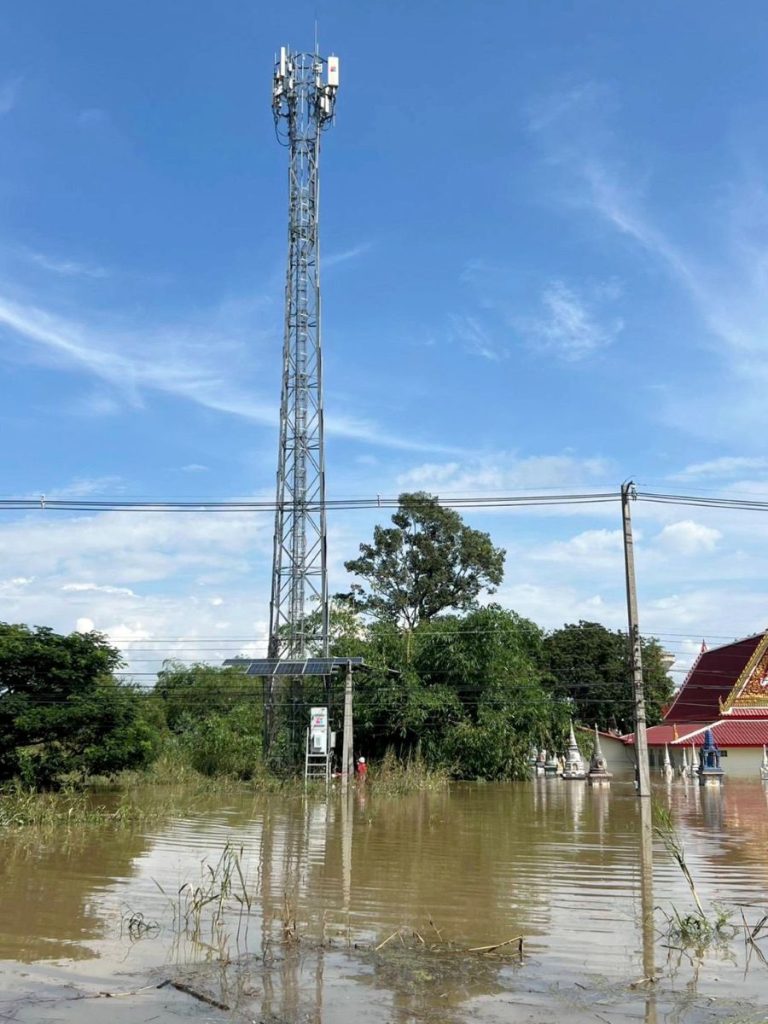 ทรู คอร์ปอเรชั่น ได้ส่งทีมเน็ตเวิร์กลงสำรวจสถานีฐานในพื้นที่เสี่ยงหลายจังหวัดภาคกลางที่ยังคงประสบน้ำท่วมต่อเนื่อง โดยเฉพาะในจังหวัดสิงห์บุรี ซึ่งเมื่อวันที่ 12 พฤศจิกายนที่ผ่านมา เกิดเหตุพนังกั้นน้ำพังทลายบริเวณอำเภออินทร์บุรี ส่งผลให้น้ำทะลักเข้าท่วมพื้นที่เพิ่มเติม ทีมเน็ตเวิร์กของทรูจึงนำเรือเข้าตรวจสอบสถานีฐานใกล้วัดดอกไม้ สิงห์บุรีที่น้ำท่วมสูง พบว่าอุปกรณ์สื่อสารหลักยังคงทำงานได้ตามปกติ แต่เพื่อความมั่นใจจึงได้ยกระดับมาตรการด้านความปลอดภัยระบบไฟฟ้า และได้ประสานการไฟฟ้าภูมิภาคเข้าดูแล เพื่อป้องกันผลกระทบไฟรั่วต่างๆ หากระดับน้ำยังคงเพิ่มสูงขึ้น