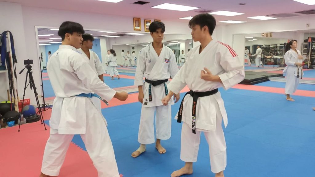 จากนั้น ดร.ณัฏฐ์ ธีรณัฐสุภานนท์ พร้อมคณะได้ไปเยี่ยมชมการฝึกซ้อมของนักกีฬาคาราเต้ทีมชาติไทย โดยมี พลเอกสุรชาติ จิตต์แจ้ง นายกสมาคมกีฬาคาราเต้แห่งประเทศไทย คณะผู้ฝึกสอนและนักกีฬาคาราเต้ทีมชาติไทยให้การต้อนรับ โดย ดร.ณัฏฐ์ ธีรณัฐสุภานนท์ ได้มอบกระเช้าผลไม้และเงิน 20,000 บาทสนับสนุนการฝึกซ้อมของนักกีฬาคาราเต้ทีมชาติไทย เพื่อเป็นขวัญและกำลังใจให้กับนักกีฬาคาราเต้ทีมชาติไทย ทำให้นักกีฬาคาราเต้รู้สึกอบอุ่นในกำลังใจที่มอบให้ในวันนี้ ดร.ณัฏฐ์ ธีรณัฐสุภานนท์ ยังกล่าวชื่นชมน้องๆนักกีฬาคาราเต้ทีมชาติไทย กับความเสียสละ ความมุ่งมั่นในการฝึกซ้อมเป็นตัวแทนประเทศไทยในการแข่งขันกีฬาซีเกมส์ ครั้งที่ 33 ขอให้น้องๆนักกีฬา ประสบความสำเร็จตามเป้าหมายในการแข่งขันซีเกมส์ในอีก 22 วันข้างหน้า พร้อมทิ้งท้ายกล่าวเชิญชวนแฟนกีฬาชาวไทยมาร่วมชมร่วมเชียร์เป็นกำลังใจให้กับนักกีฬาทีมชาติไทยในทุกชนิดกีฬา เพราะเสียงเชียร์จากกองเชียร์ไทยทุกท่านคือพลังในการแข่งขันของนักกีฬาทีมชาติไทยทุกคน
