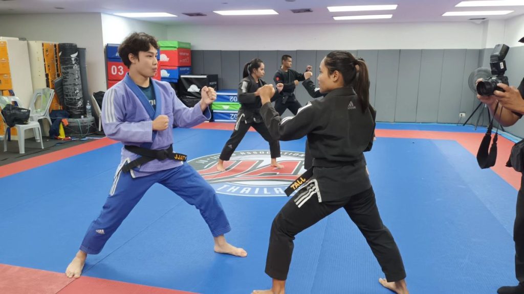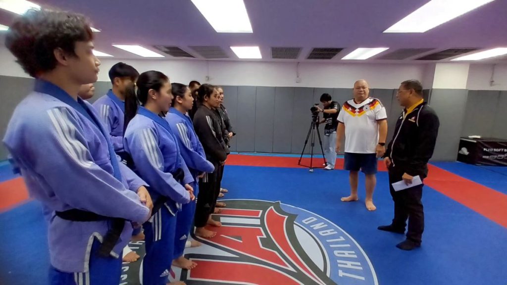 จากนั้นเดินทางไปเยี่ยมชมการฝึกซ้อมของนักกีฬายูยิตสูที่สนามซ้อมของสมาคมฯชั้นล่างสนามราชมังคลากีฬาสถาน ซึ่งนักกีฬายูยิตสูทีมชาติไทยเพิ่งเสร็จสิ้นภารกิจการแข่งขันยูยิตสูชิงแชมป์โลก ที่ประเทศไทยเป็นเจ้าภาพระหว่างวันที่ 1-15 พ.ย.ที่ผ่านมาด้วยผลงานคว้า 6 เหรียญทองในประเภทประชาชน ซึ่งเป็นนักกีฬาชุดเตรียมซีเกมส์ ครั้งที่ 33 โดยมี รศ.ดร.ชาญชัย สุขสุวรรณ์ นายกสมาคมกีฬายูยิตสูแห่งประเทศไทย ผู้ฝึกสอนและนักกีฬายูยิตสูทีมชาติไทยให้การต้อนรับ
