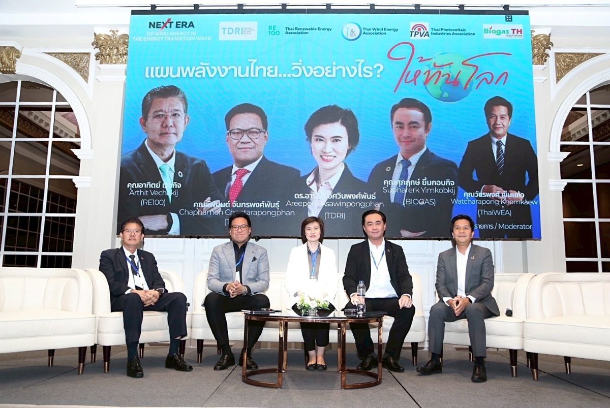 ส่วนหัวข้อปิดท้ายนั้น ทางสมาคมพลังงานลมฯ ได้จับมือกับพันธมิตรในแวดวงพลังงาน อาทิ ดร.อารีพร อัศวินพงศ์พันธ์ นักวิชาการนโยบายพลังงาน สถาบันวิจัยเพื่อการพัฒนาประเทศไทย (TDRI), คุณอาทิตย์ เวชกิจ นายกสมาคมพลังงานหมุนเวียนไทย (RE100), คุณชัพมนต์ จันทรพงศ์พันธุ์ นายกสมาคมอุตสาหกรรมเซลล์แสงอาทิตย์ไทย, คุณศุภฤกษ์ ยิ้มกอบกิจ นายกสมาคมการค้าก๊าซชีวภาพไทย และคุณวัชรพงศ์ เข็มแก้ว นายกสมาคมพลังงานลมฯเป็นผู้ดำเนินรายการ ได้ร่วมเสวนา ในหัวข้อ “แผนพลังงานไทย..วิ่งอย่างไร? ให้ทันโลก”โดยวัตถุประสงค์หลัก มุ่งเน้นการเรียกร้องและเร่งรัดให้ทางภาครัฐจัดทำและประกาศใช้แผนพลังงานชาติ (NEP) ภายในปี 2568 โดยต้อง มีกรอบที่ยึดหยุ่นและการทบทวนทุก ๆ 2 ปี เพื่อรับมือการเปลี่ยนแปลงของเทคโนโลยีและเศรษฐกิจ แผน NEP ควร มีเป้าหมายระยะสั้น (5 ปี) เน้นความสามารถในการแข่งขัน และเป้าหมายระยะยาวที่สอดคล้องกับการลดก๊าซเรือนกระจก Nationally Determined Contribution (NDC) ซึ่งตัวเลขของ Direct PPA 2,000 เมกะวัตต์ ถือเป็นโอกาสทองในการเปิดเสริไฟฟ้า แต่ควรแบ่งสัดส่วนให้แก่ผู้ผลิตไฟฟ้ารายเก่าด้วย เพื่อสร้างความเป็นธรรมและส่งเสริมการใช้พลังงานหมุนเวียนอย่างยั่งยืน