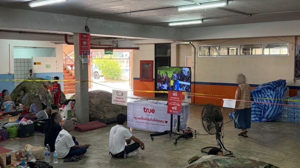 นอกเหนือจากการเสริมความพร้อมด้านโครงข่าย ทรู คอร์ปอเรชั่น ยังยกระดับการดูแลจาก “การสื่อสาร” สู่ “การดูแลพลังใจ” โดยติดตั้งทีวีจอใหญ่ในศูนย์พักพิงชั่วคราว เพื่อให้ประชาชนสามารถติดตามข่าวสารที่เชื่อถือได้อย่างใกล้ชิด พร้อมรับชมคอนเทนต์ผ่อนคลายจาก ทรูวิชั่นส์ นาว ช่วยลดความตึงเครียดและสร้างบรรยากาศผ่อนคลายในช่วงเวลาวิกฤต พร้อมกันนี้ ทรู คอร์ปอเรชั่น ได้เปิดให้บริการฟรี WiFi ภายในศูนย์พักพิงฯ เพื่อสนับสนุนการติดต่อสื่อสารรวมถึงมอบน้ำดื่มและอาหารแห้ง เพื่อบรรเทาความเดือดร้อนของประชาชนในพื้นที่ รวมถึงระดมรถโมบายล์สถานีฐานเคลื่อนที่เร็ว (COW) ประจำศูนย์พักพิงฯ ทั้งนี้ ทรู คอร์ปอเรชั่น ยังขยายมาตรการช่วยเหลือลูกค้าโดยต่ออายุมาตรการยืดชำระค่าบริการออกไปจนถึงวันที่ 22 ธันวาคม นี้