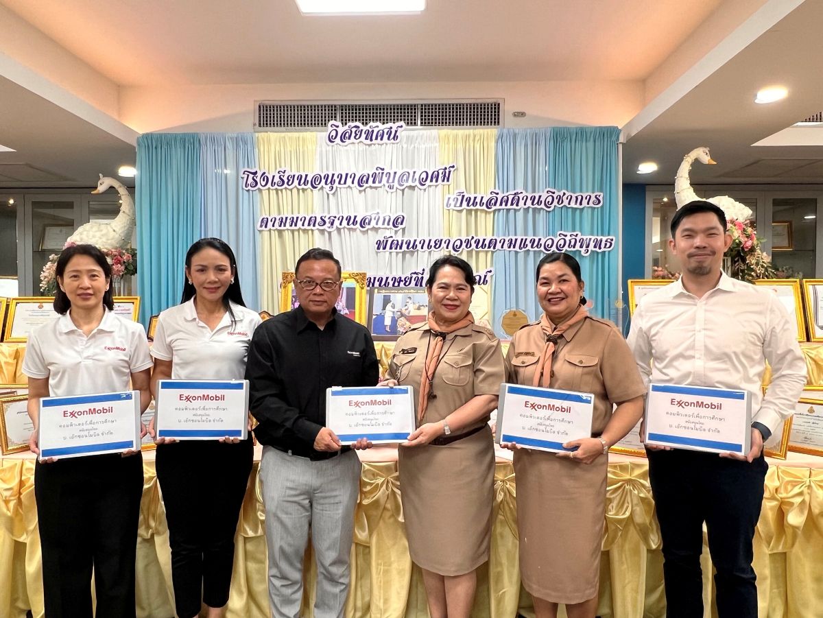 กรุงเทพฯ – เอ็กซอนโมบิลมอบตำราเรียนวิชาวิทยาศาสตร์และคณิตศาสตร์ ผ่านระบบ Blended Learning ของ Learn Education และอุปกรณ์การเรียน มูลค่า 100,000 บาท พร้อมโน้ตบุ๊ก 10 เครื่อง และอุปกรณ์สำนักงาน เพื่อเสริมศักยภาพการเรียนการสอนและสร้างสภาพแวดล้อมที่เอื้อต่อการเรียนรู้อย่างมีคุณภาพ