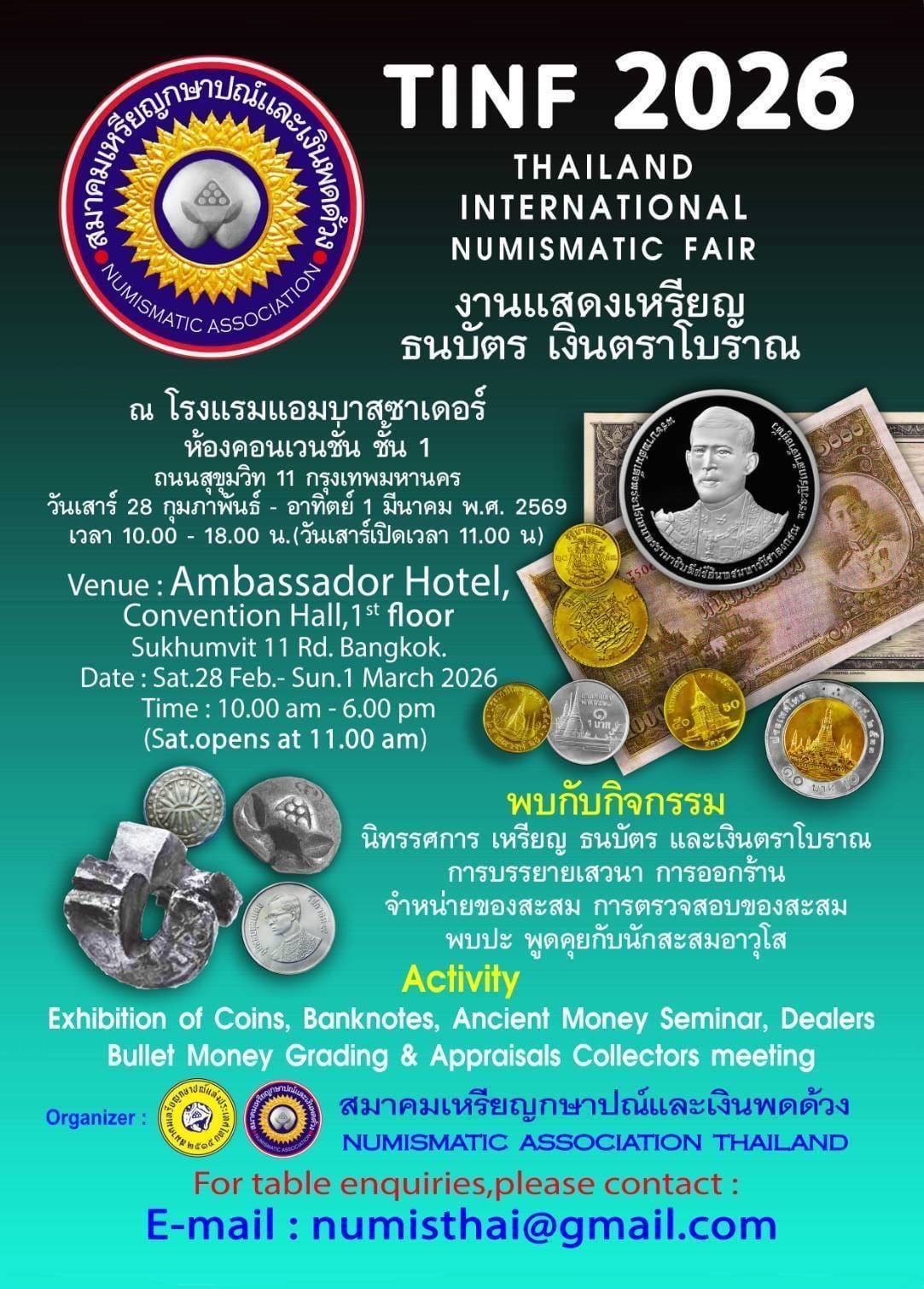ผู้สนใจเข้าร่วมงานสามารถสอบถามรายละเอียดเพิ่มเติมได้ที่ : สมาคมเหรียญกษาปณ์และเงินพดด้วง NUMISMATIC ASSOCIATION THAILAND