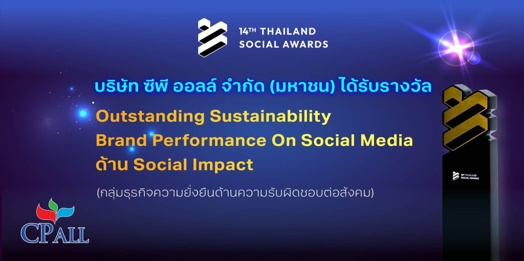 ซีพี ออลล์ คว้ารางวัลธุรกิจความยั่งยืน ด้านความรับผิดชอบต่อสังคม บนเวที Thailand Social Awards ครั้งที่ 14