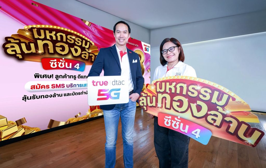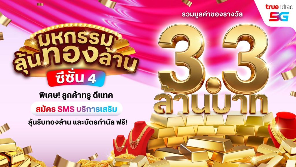 เริ่มแล้ว! มหกรรมลุ้นทองล้าน ซีซั่น 4 ทรู5G ชวนลุ้นรวยเป็นเศรษฐีทองคำ แจกจริงทองแสน 30 รางวัลใหญ่ รวมมูลค่า 3.3 ล้านบาท ตั้งแต่วันนี้ ถึง 31 ก.ค.นี้