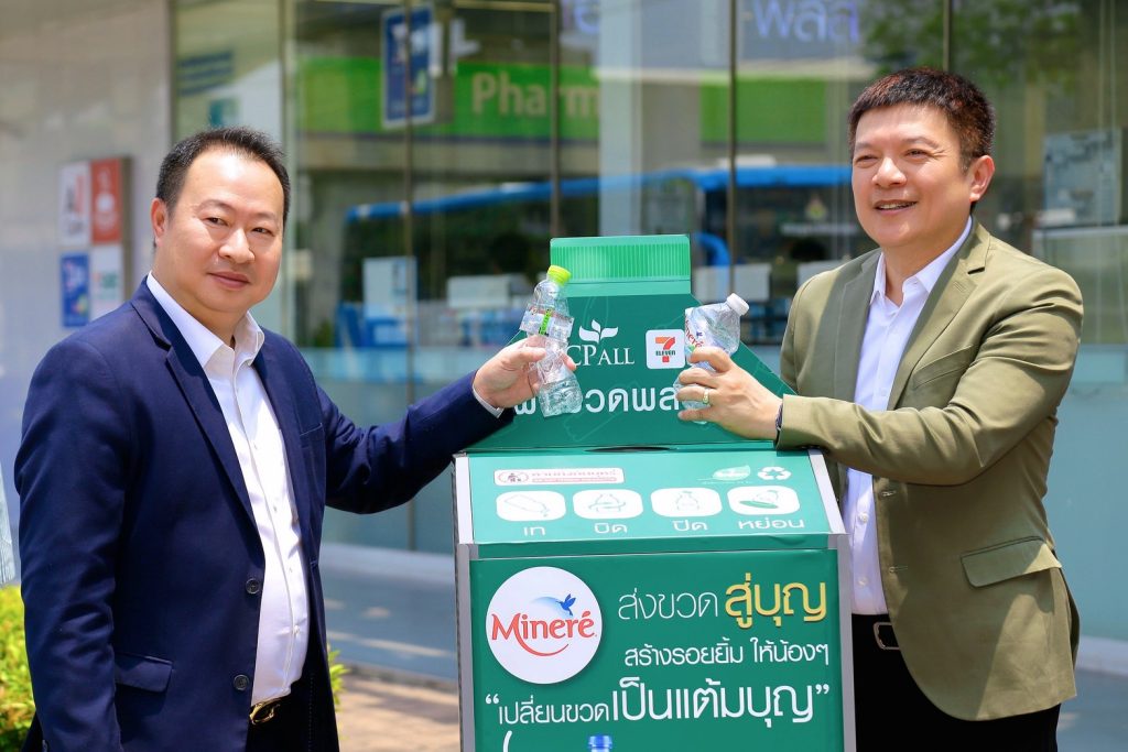 ด้าน นายไชยงค์ สกุลบริรักษ์ ผู้อำนวยการบริหารหน่วยธุรกิจน้ำดื่ม บริษัท เนสท์เล่ (ไทย) จำกัด เปิดเผยว่า “มิเนเร่มีความยินดีเป็นอย่างยิ่งที่ได้ร่วมมือกับเซเว่น อีเลฟเว่น ในการส่งเสริมการคัดแยกขยะพลาสติกเพื่อให้เข้าสู่กระบวนการรีไซเคิล ความร่วมมือครั้งนี้สะท้อนบทบาทความเป็นผู้นำของมิเนเร่ในการขับเคลื่อนเศรษฐกิจหมุนเวียน และตอกย้ำการเป็นผู้ริเริ่มนำขวดพลาสติก rPET มาใช้ในกลุ่มผลิตภัณฑ์น้ำแร่ธรรมชาติในประเทศไทย ทั้งนี้ เนสท์เล่มีเป้าหมายระดับโลกในการลดการใช้พลาสติกผลิตใหม่หนึ่งในสาม และลดการปล่อยก๊าซเรือนกระจกสุทธิเป็นศูนย์ หรือ Net Zero ภายในปี 2050 และเรารู้ดีว่า บรรจุภัณฑ์รักษ์โลกเพียงอย่างเดียวอาจไม่เพียงพอ เราจึงมุ่งสนับสนุนให้ผู้บริโภคได้มีส่วนร่วมในการจัดการขยะพลาสติกเพื่อสร้างการเปลี่ยนแปลงให้กับโลก ด้วยการเชิญชวนผู้บริโภคให้นำขวดน้ำดื่มมาทิ้ง ณ ตู้ Drop Point หน้าร้านเซเว่น อีเลฟเว่น พร้อมกับบิดขวดน้ำดื่มก่อนทิ้ง เพื่อเพิ่มพื้นที่จัดเก็บและจำนวนขวดให้เข้าสู่กระบวนการรีไซเคิลได้มากขึ้น เป็นการส่งเสริมเศรษฐกิจหมุนเวียน นำมาผลิตเป็นขวดน้ำ rPETใหม่ได้อย่างไม่จำกัด”